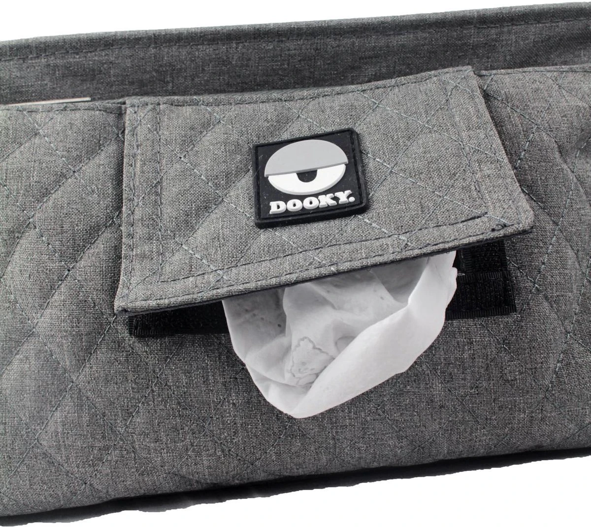 Deze stijlvolle, praktische en eigentijdse Organizer is een musthave voor iedere mama en papa! De grijs melange stof krijgt een extra accent door de zilverkeurige rits. Alle essentials voor je kindje en jezelf heb je snel bij de hand wanneer je erop uitgaat. Denk bijvoorbeeld aan fles, eten, knuffeltje, telefoon, speen, etc.. Lichtgewicht, waterafstotend en gemakkelijk te reinigen met een vochtig doekje. Met de 2 verstelbare bandjes met kliksysteem maak je de Organizer gemakkelijk vast aan de duwstang van je wagen/buggy. In het opberg compartiment kun je je spullen kwijt. Door de vakjes (3 aan de binnenkant, 1 aan de buitenkant) zijn je spullen super praktisch te organiseren. Twee vakken hebben een ritssluiting zodat je ook je telefoon, sleutels en portemonnee veilig kunt opbergen. Twee vakjes zijn ervoor gemaakt om drinkflessen rechtop te houden. Er is een speciaal ritsvakje voor billendoekjes waardoor je een snelle toegang tot je doekjes hebt. Handig toch?! Kenmerken Dooky Buggy Organizer grey melange: * Voor aan de duwstang van je wagen/buggy * 4 Opbergvakken waarvan 2 met rits en 1 voor billendoekjes * Bevestiging met stelbare clips * 14 x 40 x 17 cm (5 liter) * Stijlvolle en moderne uitstraling * Lichtgewicht * Waterafstotend * Gemakkelijk te reinigen met een vochtig doekje * Polyester * BSCI-keurmerk (o.a. sociaal beleid, fairtrade, geen kinderarbeid, eco vriendelijkheid) * Vegan (geen dierlijke grondstoffen gebruikt) Naast deze Dooky Buggy Organizer grey melange kun je bij ons terecht voor vele andere items van Dooky (). Over Dooky: Jouw kindje ergens mee naar toe nemen is door Dooky nog nooit zo gemakkelijk geweest. Dooky heeft tal van producten die niet meer weg te denken zijn uit het straatbeeld. Bijvoorbeeld heeft Dooky diverse hoezen ontwikkeld om in een handomdraai de autostoel groep 0+ of groep 1 te voorzien van een nieuw uiterlijk. Inmiddels zijn ook de voetenzakken, gordelbeschermers, zonnebrillen en slabbetjes niet meer weg te denken uit het assortiment. Elk product is verkrijgbaar in diverse dessins zodat er voor elke smaak een product te vinden is. Dooky heeft alle producten in huis om veilig en stijlvol met je kleintje op pad te gaan.
