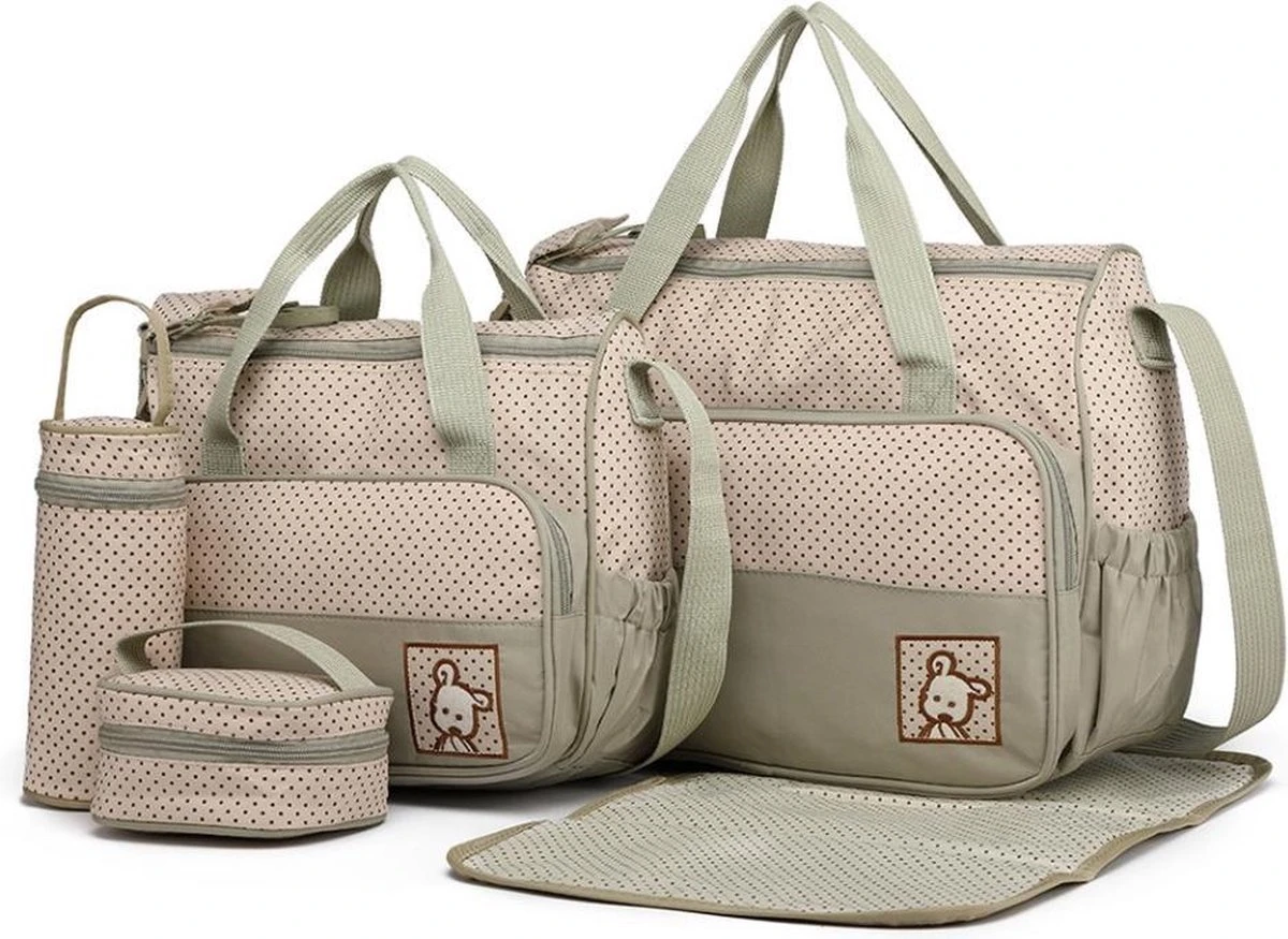 De Miss Lulu stijlvolle 5-delige premium luier- en verzorgingstas is erg ruim en praktisch ingedeeld. Al je spulletjes kan je gemakkelijk kwijt in deze set. Bestaande uit 2 verschillende formaten luiertassen, inclusief verschoonmatras en een tasje voor de fles & eten. Er zit zelfs een thermozakje bij!! De luiertasset beschikt over verschillende handige opbergvakken.
